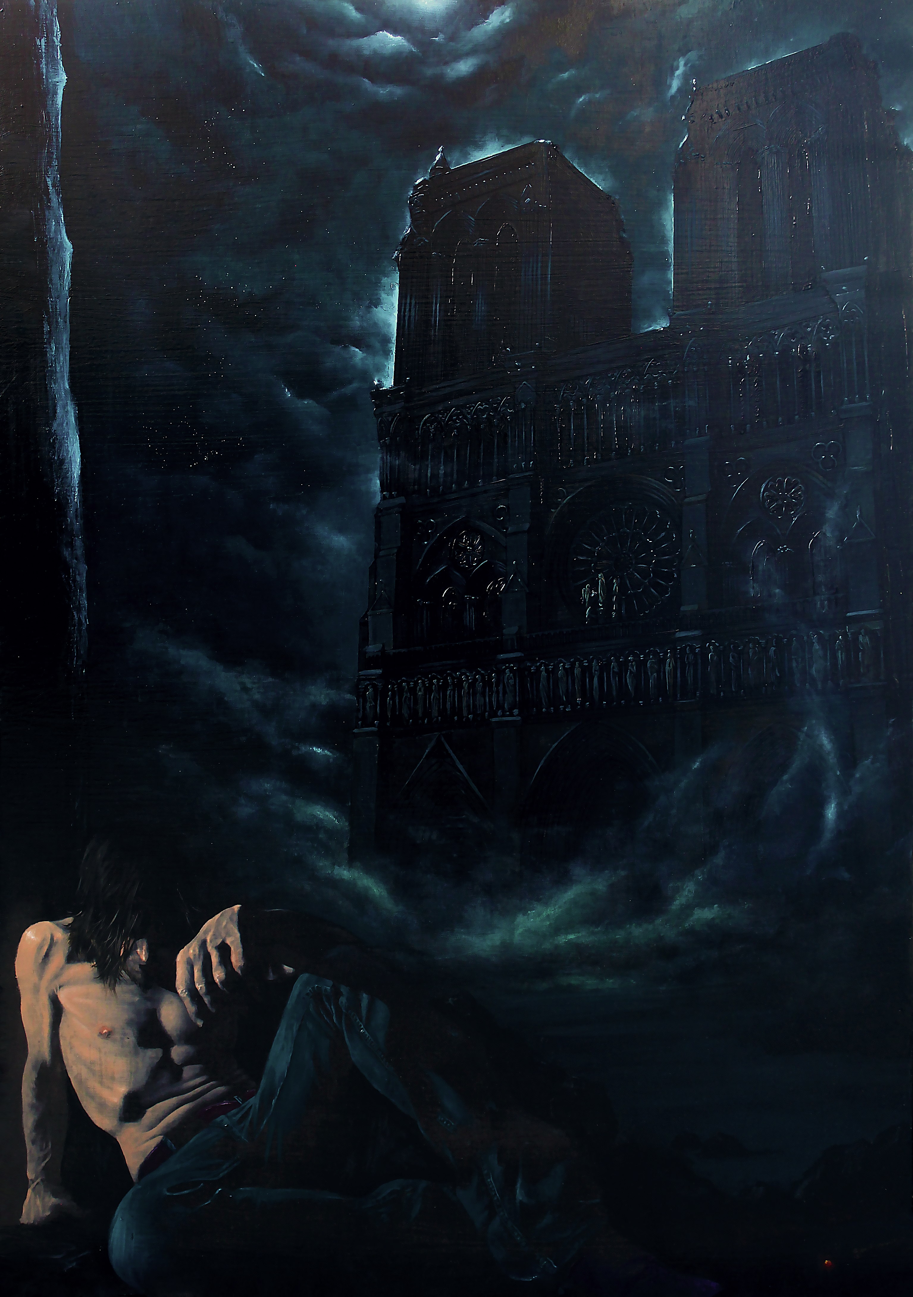 Dietro l’artista s’innalza imponente una Cattedrale, emblema dell’Arte Sublime, come se fosse comparsa all'improvviso dal nulla, come un fantasma; appare come <la natura nei suoi aspetti più terrificanti, come mari burrascosi, cime innevate o eruzioni vulcaniche> diventa dunque la fonte del Sublime perché <produce la più forte emozione che l'animo sia capace di sentire>